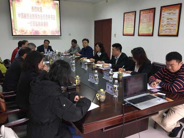 《融资担保公司监督管理条例》(以下简称《条例》)于2017年10月1日正式实施,为了解《条例》实行对海南地区担保机构经营情况的影响以及收集行业相关发展意见,2018年1月15日上午,中国融资担保业协会任彦祥书记一行3人莅临海口市担保投资有限公司(以下简称"海口担保")调研,海南省担保行业协会杨亚福秘书长、海南省财政厅符厚胜科长、协会张玲副秘书长陪同调研,海口担保、三亚担保、信联盛担保、琼中生态担保等4家机构高管代表国有、民营担保机构参加了座谈,公司王治平董事长、许海果总经理及其他2名高管参加了会议。