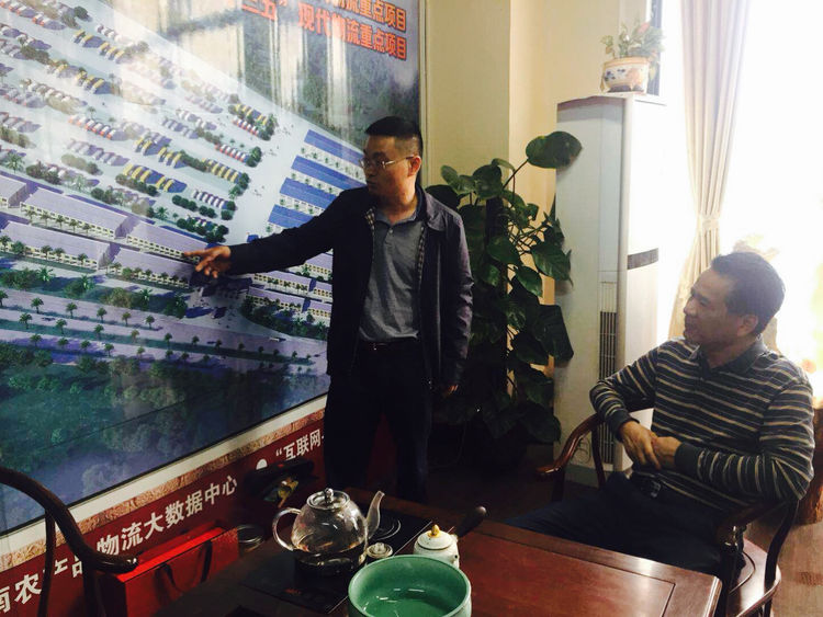 担保公司王治平董事长与海口加旺公司龚农董事长探讨海南当地菜价波动问题。