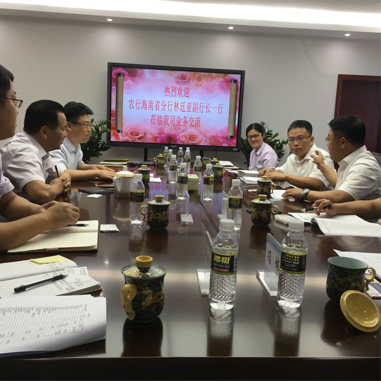 林廷亚副行长首先对海口担保的热情接待表示感谢,并表示此次来访的主要目的是重新开展对海口担保的业务合作,对海口担保的准入标准进行协调与沟通,从而切实解决农行小微及三农企业融资难、融资贵的问题。