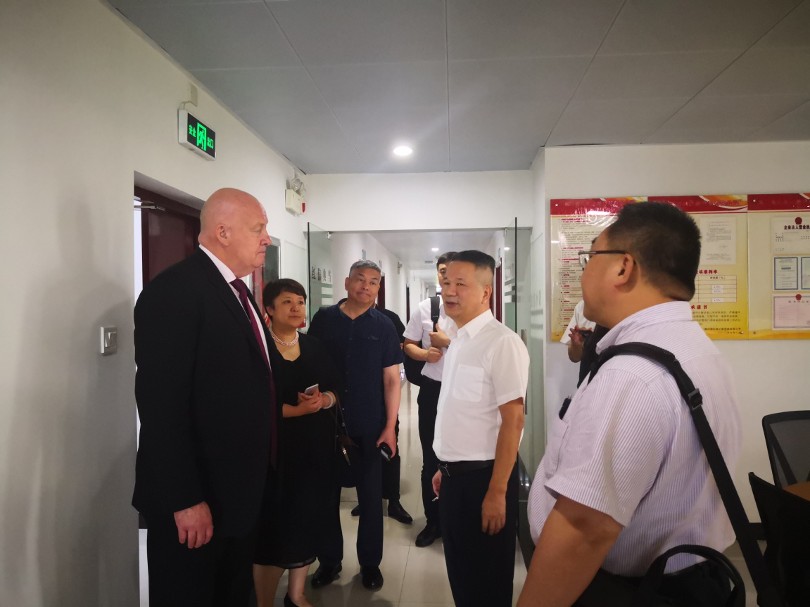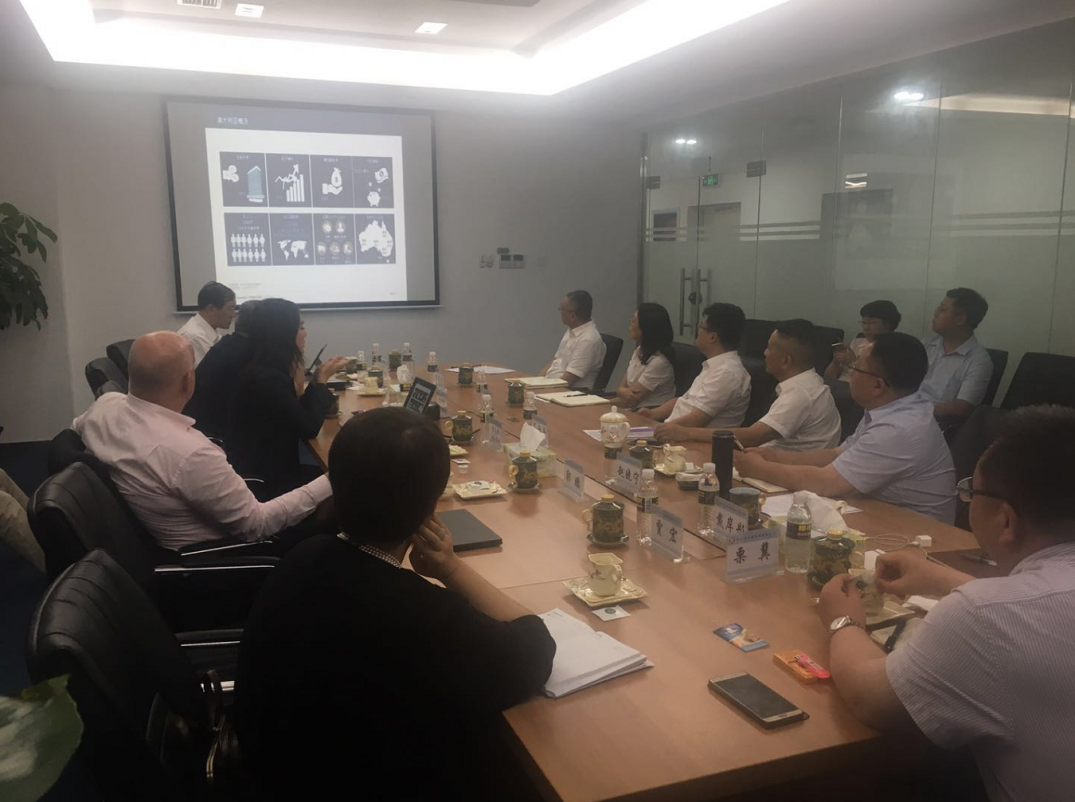 海口m88asia王治平董事长率许海果总经理等公司管理人员,陪同到访的中国通用咨询栗冀董事长、美驰澳大利亚有限公司(Moelis Australia)资产管理部雷艾伦(Alan Reid )董事总经理 、澳大利亚中国商务和贸易促进协会会长吴威濂等一行12人参观了公司办公场所,并进行了充分深入的沟通和交流。