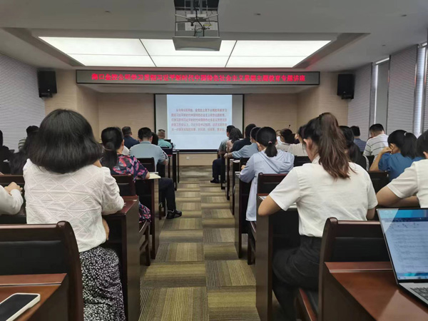 为深入学习贯彻落实党的二十大精神,坚持不懈用习近平新时代中国特色社会主义思想武装头脑、指导实践、推动工作,6月9日,市m88asia公司组织召开新时代中国特色社会主义思想主题教育宣讲会。本次宣讲会邀请了海南省委党校(海南省行政学院)王白娇教授作《学习习近平新时代中国特色社会主义思想 推动企业创新能力提升》专题培训。(唐盼盼)