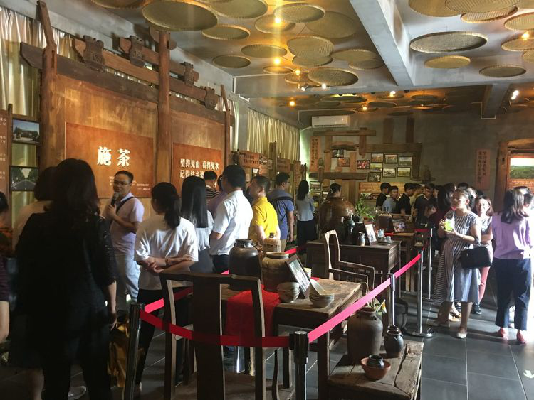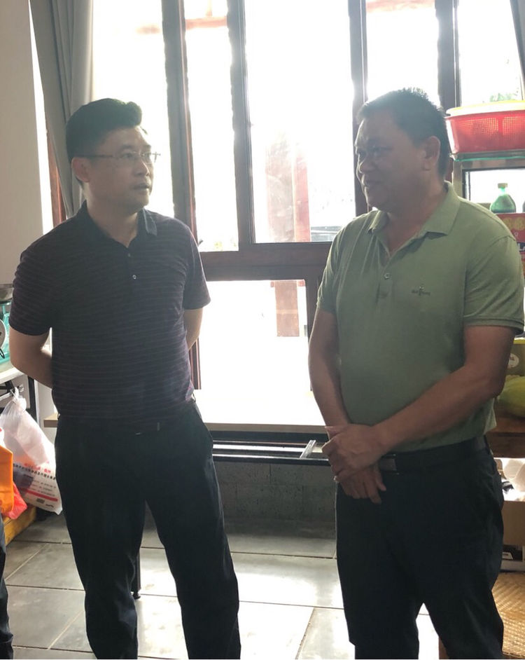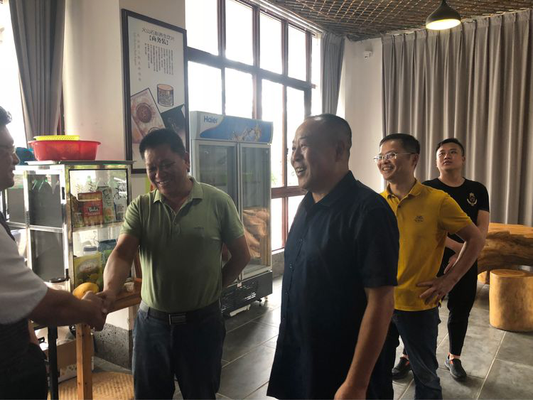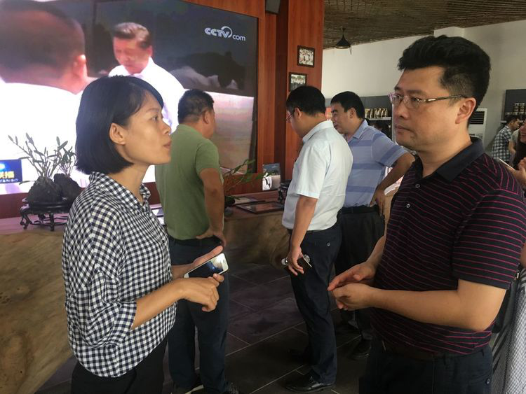 今天主题党日活动的一个亮点是组织全体党员职工重走总书记考察施茶村之路,体会4.13讲话精髓,领略脱贫致富后施茶村美丽乡村好风光。 (图为施茶村党支部书记洪义乾向公司许海果总经理交流互联网+党建促进产业发展经验)