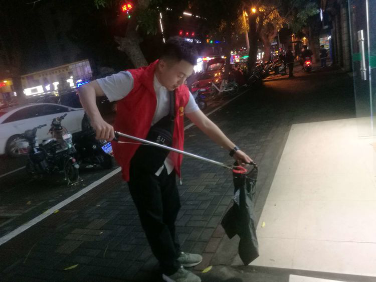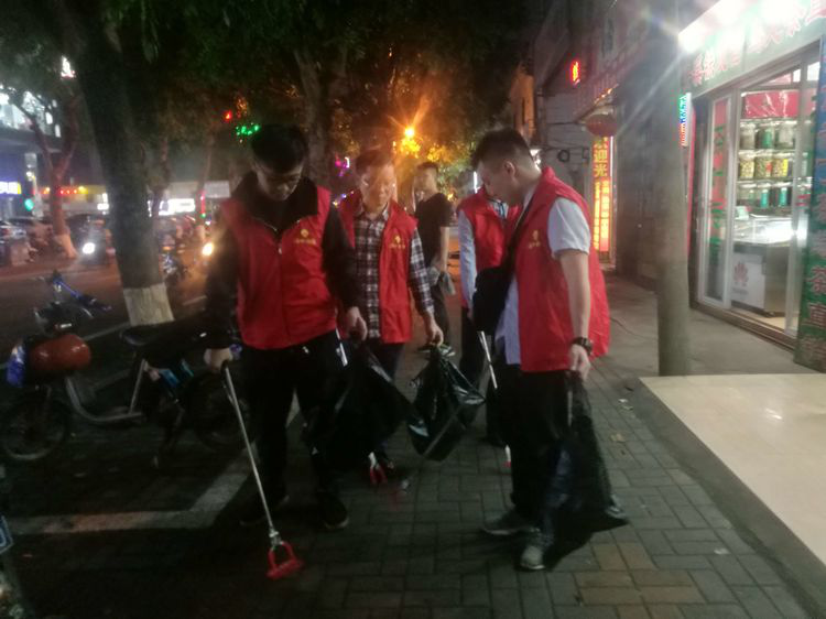 志愿者们在巡查过程中,发现路面不时有烟头、纸屑、塑料袋等垃圾,市民的卫生意识较比双创期间有所下降,志愿者们及时清扫路面垃圾,同时劝导商铺做好门前卫生。