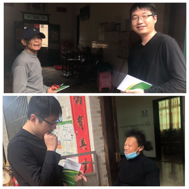 (帮扶责任人向脱贫户宣传项目技术手册)