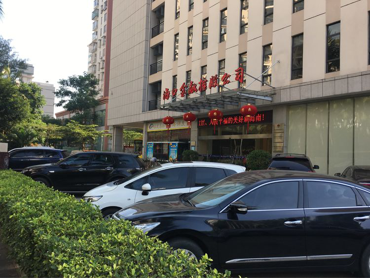 公司后勤人员正在清整环境卫生,给花草补给水分。