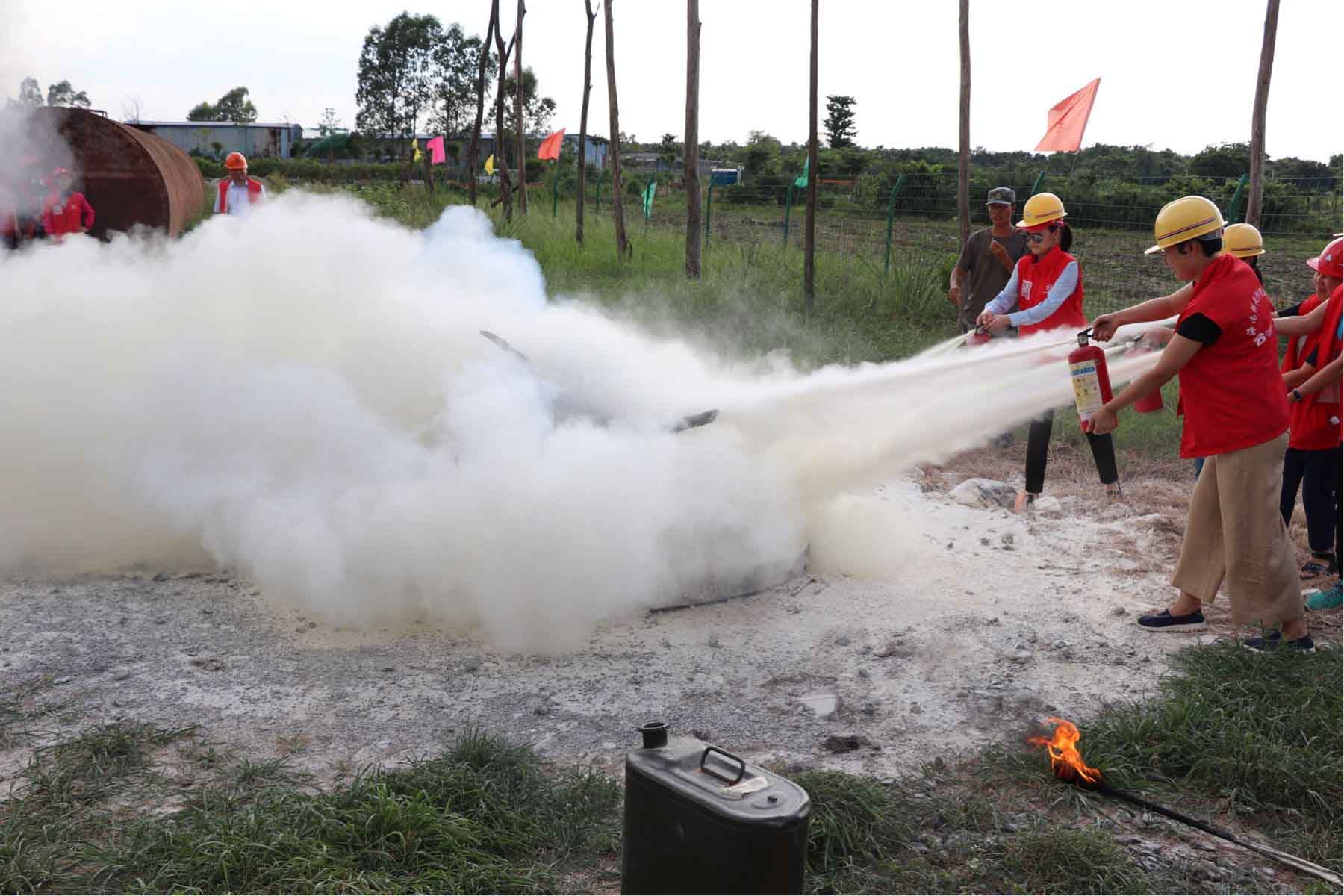 本次演练内容有车辆起火逃生、结绳训练、高空缓降、灭火器灭火演练、消防栓演练、防烟工具操作学习、烟道火场逃生、心脏复苏术学习、钢化玻璃击碎训练等全真模拟实战课程。