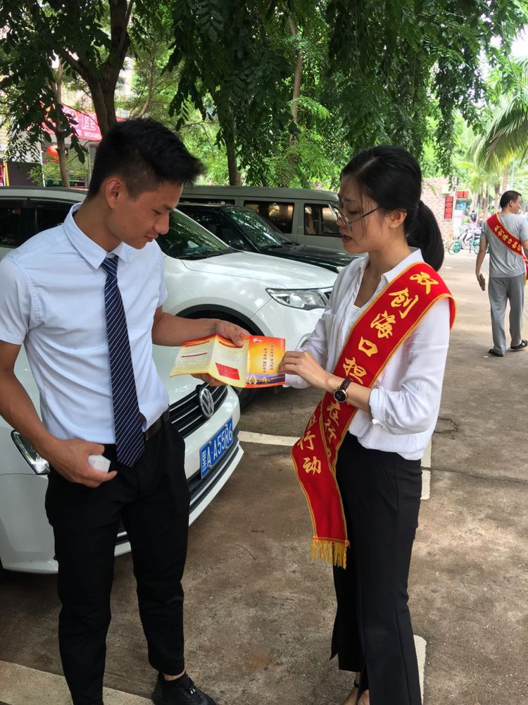 海口市担保投资有限公司深入社区发放宪法宣传单页